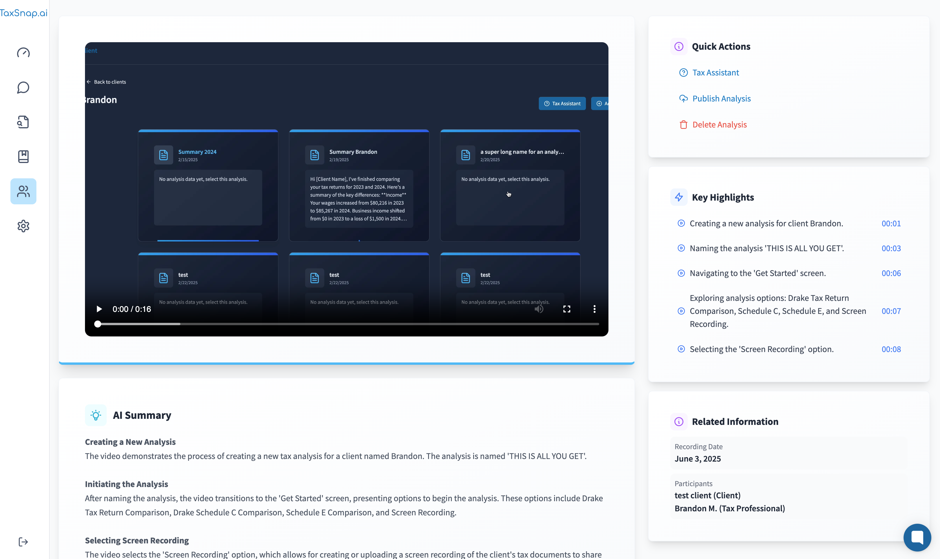 Our platform allows you to record or upload videos and easily share them with your clients. Our AI will generate a summary of your video and key highlights. Clients are provided with a password-protected page to view the video.